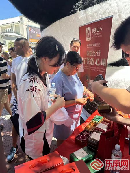 “武夷山水”產(chǎn)品走進(jìn)開(kāi)普敦布展現(xiàn)場(chǎng) 朱聯(lián)輝 攝 東南網(wǎng)2月14日訊(通訊員 吳文菁)春節(jié)期間,在南平市首批海外招商大使朱聯(lián)輝的努力推動(dòng)下,南平市“武夷山水”品牌亮相第三屆“四海同春 華星閃耀——開(kāi)普敦中國(guó)年”活動(dòng),吸引了數(shù)萬(wàn)名當(dāng)?shù)孛癖娕c境外游客的目光,為這座城市披上了一層絢麗的中國(guó)紅。此次盛會(huì),中國(guó)駐開(kāi)普敦總領(lǐng)事及南非西開(kāi)普省、開(kāi)普敦市的數(shù)位官員出席,共同見(jiàn)證這一文化盛事。 當(dāng)?shù)弥戏情_(kāi)普敦即將舉辦“四海同春”活動(dòng),招商大使朱聯(lián)輝等人迅速行動(dòng),與組委會(huì)、主辦方緊密溝通,確?!拔湟纳剿逼放颇茉诨顒?dòng)中占據(jù)一席之地,他們自費(fèi)將“武夷山水”茶葉、茶器、茶點(diǎn)等特色產(chǎn)品運(yùn)至南非,自費(fèi)租用展館、精心布展、制作宣傳品,才使得“武夷山水”品牌得以驚艷亮相。