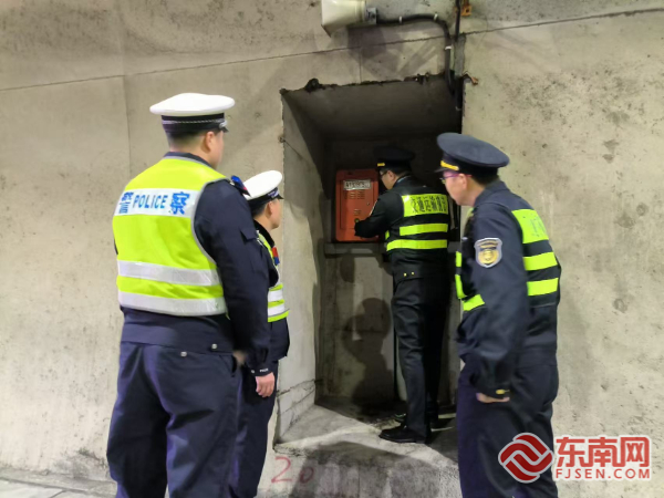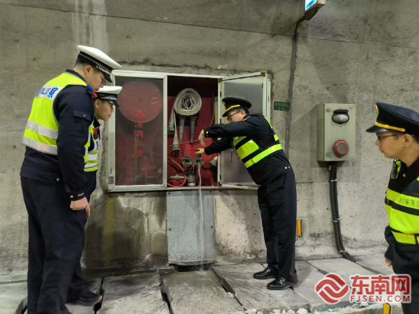 檢查隧道緊急電話箱。寧德高速執(zhí)法支隊供圖 在消防設(shè)施檢查方面,巡查組對隧道內(nèi)的消防滅火器進行了壓力檢測和密封性檢測,并仔細核對了年檢標識,確保滅火器在緊急情況下能夠正常使用。同時,對消防水閥進行了開關(guān)功能測試,檢查水閥系統(tǒng)是否運行良好,以保障在火災(zāi)等緊急情況下能夠迅速啟用,為隧道安全提供有力保障。