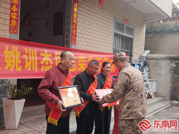 送喜報 東南網(wǎng)2月20日訊(通訊員 許彬彬 文/圖)2月18日,一支由莆田市涵江區(qū)人武部、涵江區(qū)退役軍人事務局及鄉(xiāng)鎮(zhèn)、街道相關領導一行組成的送喜報慰問組,將8張喜報熱熱鬧鬧地送到立功軍人家中,向軍人家屬表達崇高的敬意及熱烈的祝賀,共同見證“一人立功、全家光榮”的榮耀時刻。 “橫幅拉起來,鑼鼓敲起來?!被顒蝇F(xiàn)場,喜慶的鑼鼓聲引來鄰里群眾駐足喝彩,慰問組與立功軍人家屬親切交流,感謝軍屬一直以來默默支持子女獻身國防,希望他們鼓勵孩子再接再厲、積極進取、再立新功。 一紙喜報,重若千鈞,承載的是軍人枕戈待旦、守望歲月的家國情懷,體現(xiàn)的是軍人奮勇拼搏、無私奉獻的崇高精神。此次活動中,涵江區(qū)還為這8位榮立三等功的立功軍人家庭送上了1.6萬元的慰問金,用實際行動表達了對軍人及其家庭的關懷與尊重,營造擁軍優(yōu)屬的良好氛圍。 溫暖不止新春,尊崇從未止步。下一步,涵江區(qū)將持續(xù)以實際行動做深做實做細擁軍優(yōu)屬工作,營造全民愛國擁軍的濃厚氛圍,鼓勵更多適齡青年踴躍參軍,建功軍營,續(xù)寫新時代軍民魚水深情。 |