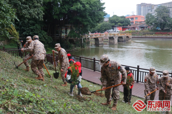 活動(dòng)現(xiàn)場(chǎng) 東南網(wǎng)3月6日訊(通訊員 陳文華文/圖)3月5日,莆田市荔城區(qū)退役軍人事務(wù)局、區(qū)人武部、新度鎮(zhèn)組織退役軍人志愿服務(wù)隊(duì)開展“學(xué)雷鋒?文明實(shí)踐我行動(dòng)”志愿服務(wù)活動(dòng),營造“奉獻(xiàn)、友愛、互助、進(jìn)步”崇德向善的社會(huì)氛圍,展現(xiàn)新時(shí)代退役軍人的良好風(fēng)貌。 此次活動(dòng)以“雷鋒精神傳薪火 巡河實(shí)踐守初心”為主題,退役軍人志愿服務(wù)隊(duì)與新度鎮(zhèn)民兵、黨員干部、志愿者、社工齊聚在下橫山五府橋(渠橋河),開展植樹、垃圾清理等活動(dòng)。志愿者們手持垃圾鉗沿河岸進(jìn)行清潔,揮锨鏟土、挖穴栽樹、扶直培土,認(rèn)真細(xì)致地栽好每一株樹木,現(xiàn)場(chǎng)一片熱火朝天的勞動(dòng)場(chǎng)景,為實(shí)現(xiàn)河暢、水清、岸綠、景美獻(xiàn)出力量。當(dāng)天,志愿者們還聆聽木蘭溪治理宣講,進(jìn)一步增強(qiáng)保護(hù)水資源、維護(hù)生態(tài)環(huán)境的意識(shí)。