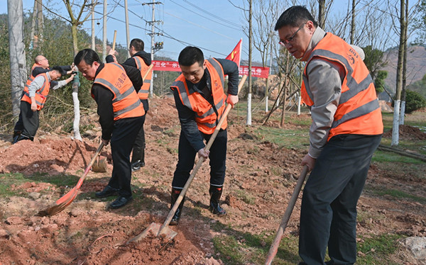 清流公路分中心黨員領(lǐng)導(dǎo)干部與認(rèn)領(lǐng)苗木合影 3月11日上午,清流公路分中心以植樹(shù)節(jié)為契機(jī),聯(lián)合縣交通運(yùn)輸局,組織全體黨員干部職工50余人,在G534線清流林畬停車區(qū)開(kāi)展“匯聚交通力量,共建綠色公路”主題植樹(shù)活動(dòng)。通過(guò)“黨建+生態(tài)養(yǎng)護(hù)”的創(chuàng)新實(shí)踐,將主題黨日搬到公路生態(tài)廊道建設(shè)一線,實(shí)現(xiàn)黨性錘煉與業(yè)務(wù)發(fā)展同頻共振。 大家還將樹(shù)木認(rèn)養(yǎng)牌掛在樹(shù)上,并與其合影留念。黨員們用“樹(shù)木認(rèn)領(lǐng)”的形式,實(shí)現(xiàn)“黨建紅”引領(lǐng)“生態(tài)綠”。“我是這棵樹(shù)的責(zé)任人,我一定積極履行管護(hù)責(zé)任,認(rèn)真做好澆水、修剪、施肥等工作,堅(jiān)決防止人為破壞,讓我們共同守護(hù)綠色,為共建美好和諧家園貢獻(xiàn)自己的一份力量!”黨員干部如是說(shuō)。 一棵棵樹(shù)苗扎根公路沿線,一抹抹“志愿紅”點(diǎn)亮生態(tài)畫(huà)卷。清流公路分中心以“黨建紅”賦能“公路綠”,用實(shí)際行動(dòng)詮釋“人在路上,路在心上”的行業(yè)精神,為實(shí)現(xiàn)清流公路高質(zhì)量發(fā)展、打造人民滿意公路注入紅色動(dòng)能。 |