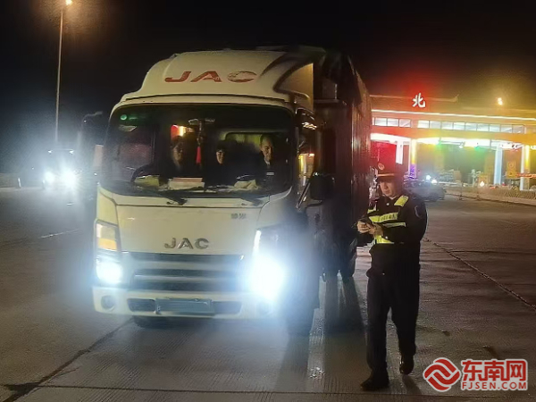 執(zhí)法人員檢查證件。寧德高速執(zhí)法支隊(duì)供圖 晝夜聯(lián)動(dòng),夜間突查超限運(yùn)輸。3月10日晚,福安北中隊(duì)聯(lián)合轄區(qū)高速交警開展夜間治超專項(xiàng)行動(dòng),精準(zhǔn)打擊貨運(yùn)車輛違法超限運(yùn)輸行為。執(zhí)法人員采取 “定點(diǎn)布控 + 流動(dòng)巡查” 的模式,在轄區(qū)收費(fèi)站設(shè)置臨時(shí)檢查點(diǎn),通過目測(cè)車輛外廓尺寸、核驗(yàn)電子運(yùn)單、檢查貨物固定情況等方式,對(duì)過往車輛進(jìn)行嚴(yán)格篩查。