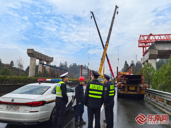 開展專項安全檢查。寧德高速執(zhí)法支隊供圖 針對寧德春季頻發(fā)的暴雨及周寧地區(qū)夜間團霧風險,檢查組要求施工方在20:00至次日6:00增設移動式爆閃燈、電子警示屏等設備,提升低能見度條件下的警示效果,并規(guī)范施工車輛霧燈、輪廓燈使用。周寧中隊執(zhí)法員表示:“如遇突發(fā)團霧或強降雨,施工方須立即暫停作業(yè),保障施工安全。”