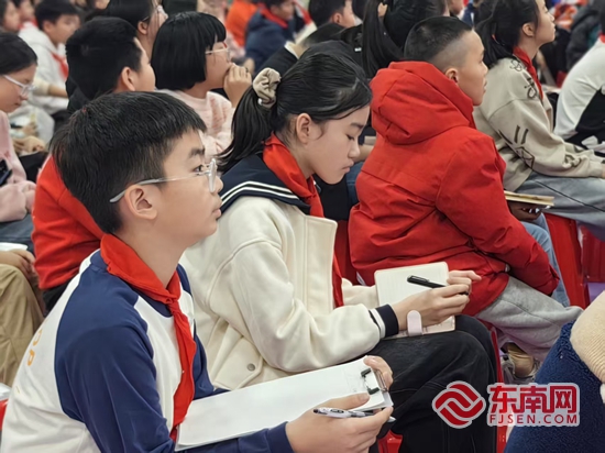 宣講現(xiàn)場(chǎng),學(xué)生們認(rèn)真聆聽紅色故事,并時(shí)刻做筆記。謝吉柳 供圖 宣講結(jié)束后,主辦方一行參觀了晉江市第二實(shí)驗(yàn)小學(xué)史志驛站和青新書院史志驛站。站內(nèi)豐富的史志書籍,為學(xué)生和社區(qū)居民讀史用志搭建了新平臺(tái),讓史志文化“走出去”“用起來”。 “通過這次活動(dòng),我深刻認(rèn)識(shí)到紅色精神的偉大力量,它是無(wú)數(shù)先輩用熱血和生命鑄就的寶貴財(cái)富。作為新時(shí)代的少年,我們要將紅色精神傳承下去,讓它在新時(shí)代綻放出更加耀眼的光芒。”來自晉江市第二實(shí)驗(yàn)小學(xué)的陳思妤同學(xué)說道。 此次“講好紅色故事 傳承紅色薪火”紅色故事宣講進(jìn)校園活動(dòng),讓師生們?cè)诩t色故事中感悟革命精神,汲取奮進(jìn)力量。主辦方希望,未來有更多青少年能夠在紅色精神的激勵(lì)下,努力學(xué)習(xí),為實(shí)現(xiàn)中華民族偉大復(fù)興的中國(guó)夢(mèng)貢獻(xiàn)自己的力量。 泉州紅色故事“七進(jìn)”基層巡回宣講進(jìn)校園活動(dòng)旨在深入貫徹落實(shí)習(xí)近平總書記在福建考察時(shí)的重要講話精神,扎實(shí)推進(jìn)黨史學(xué)習(xí)教育,強(qiáng)化青少年思想政治引領(lǐng),教育引導(dǎo)少年兒童傳承紅色基因,賡續(xù)紅色血脈。本次活動(dòng)由泉州市委黨史方志室、泉州市委文明辦、泉州市關(guān)工委、晉江市委黨史方志室主辦,晉江市關(guān)工委、晉江市老促會(huì)、晉江市第二實(shí)驗(yàn)小學(xué)、晉江市青陽(yáng)街道青新社區(qū)承辦。 |