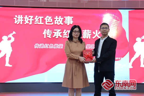 泉州市委黨史方志室向?qū)W校贈(zèng)送史志書籍。晉江市第二實(shí)驗(yàn)小學(xué) 供圖 隨后,5位來自泉州紅色故事宣講團(tuán)、晉江紅色故事宣講團(tuán)的宣講員依次登場(chǎng),他們以聲情并茂的講述,為聽眾們帶來了一場(chǎng)震撼人心的紅色故事盛宴。泉州市煙草專賣局團(tuán)委書記、石獅市祥芝鎮(zhèn)湖西村駐村第一書記楊馨通過《家書里的華僑英烈》,展現(xiàn)中共泉州中心縣委首任書記李剛舍家衛(wèi)國(guó)的英勇事跡;惠安縣山霞中心小學(xué)德育處主任蔣越冬講述《惠女精神 永遠(yuǎn)的傳承》,帶領(lǐng)聽眾領(lǐng)略惠女堅(jiān)韌不拔、無(wú)私奉獻(xiàn)的精神風(fēng)貌;黎明職業(yè)大學(xué)教師蔡君雄的《用青春詮釋偉大的抗戰(zhàn)精神》,讓李子芳堅(jiān)定信仰、寧死不屈的形象躍然眼前;英林鎮(zhèn)英埔中心小學(xué)教師柯遠(yuǎn)峰分享《百兩黃金借還記》,一段共產(chǎn)黨人和宗教人士互信互助的佳話讓大家深刻體會(huì)到共產(chǎn)黨人廉潔奉公的優(yōu)良作風(fēng);泉州市第二中心小學(xué)教師陳嘉瑜帶來的《烽火赤子 芳華無(wú)悔》,講述了南僑機(jī)工在中華民族危難關(guān)頭捐軀國(guó)難的感人故事。