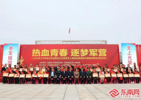 巡游現(xiàn)場 東南網(wǎng)3月17日訊(通訊員 陳君妍 黃惠云 文/圖)3月14日,莆田市仙游縣舉行2025年上半年“熱血青春 逐夢軍營”主題系列歡送新兵活動,173名熱血青年身披戎裝、懷揣赤誠,即將開啟保家衛(wèi)國的軍旅生活。值得一提的是,此次活動別出心裁,在以往送喜報(bào)方式的基礎(chǔ)上進(jìn)行創(chuàng)新,將新兵與立功喜報(bào)一同送達(dá),讓新兵在踏上征程之際,感受榜樣力量,汲取奮進(jìn)動力,共筑熱血報(bào)國夢。 當(dāng)天下午3時(shí)許,新兵及其家屬、立功受獎(jiǎng)軍屬在縣人民武裝部營區(qū)集結(jié)。激昂的鑼鼓聲瞬間點(diǎn)燃了現(xiàn)場氣氛,2025年上半年仙游新兵出征巡游儀式正式啟幕。巡游隊(duì)伍從縣人民武裝部營區(qū)出發(fā),沿著八二五北街、清源東路、二環(huán)路紅綠燈行進(jìn),最終抵達(dá)仙游縣六館廣場。 一路上,交警全程護(hù)航,場面聲勢浩大。道路兩旁,學(xué)生們列隊(duì)歡送,群眾自發(fā)沿路相送,大家揮舞著紅旗,用最真摯的祝福為即將奔赴軍營的青年們壯行。173名新兵身著嶄新軍裝、胸戴紅花、身披綬帶,邁著整齊的步伐,齊聲高唱《團(tuán)結(jié)就是力量》,展現(xiàn)出新時(shí)代仙游好兒郎的良好風(fēng)貌和高昂士氣,“當(dāng)兵光榮”的氛圍彌漫在整個(gè)城區(qū)。