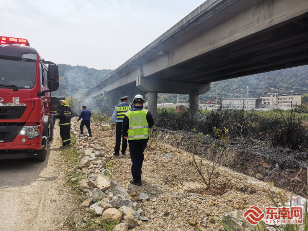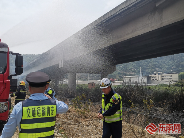東南網(wǎng)4月11日訊(通訊員 栗振文 黃婕琳)4月9日上午11時許,寧德高速執(zhí)法支隊寧德西中隊執(zhí)法人員進行日常巡查時,發(fā)現(xiàn)甬莞高速七都溪大橋路側(cè)草叢突發(fā)火情,現(xiàn)場濃煙彌漫,火勢隨風(fēng)擴散。周邊存在干草及易燃建材,不及時控制恐危及橋梁結(jié)構(gòu)及周邊居民安全。