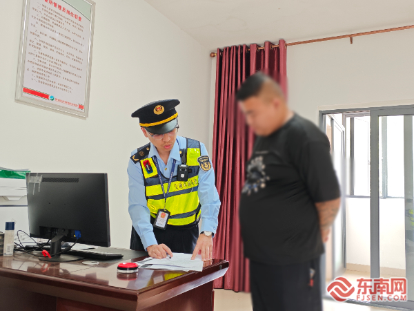執(zhí)法人員對駕駛員進(jìn)行普法。寧德高速執(zhí)法支隊供圖 當(dāng)天上午10時許,一輛冀D牌照的輕型廂式貨車駛?cè)霗z查區(qū)。經(jīng)現(xiàn)場測量,該車裝載高度達(dá)4.2米,超出國家規(guī)定限高0.2米。執(zhí)法人員按規(guī)定登記車輛證件后,并未直接開具罰單,而是啟動教育程序。