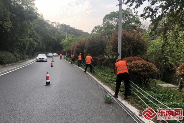 養(yǎng)護(hù)工人為道路臨邊側(cè)安裝纜索防撞護(hù)欄(廈門公路中心供圖) 東南網(wǎng)5月14日訊(本網(wǎng)記者 劉瑋 通訊員 陳志勇)近日,廈門文曾路花溪段交安設(shè)施完善項(xiàng)目順利完工,為這條兼具交通與休閑旅游功能的生態(tài)公路筑牢了安全防線。 據(jù)悉,文曾路山嶺路段因早期項(xiàng)目建設(shè)定位及地形條件限制,存在諸多“短板”,如局部路段道路縱坡較大、道路寬度受限、人行道未全線貫通等。近年來,廈門交通公路部門通過多種項(xiàng)目形式陸續(xù)進(jìn)行優(yōu)化改造,消除了不少安全隱患。
