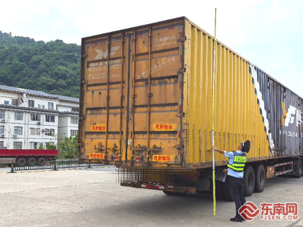 測(cè)量貨車高度。寧德高速執(zhí)法支隊(duì)供圖 行動(dòng)中,執(zhí)法人員與交警密切協(xié)作,依托福安收費(fèi)站對(duì)過往車輛進(jìn)行“全覆蓋式”檢查,重點(diǎn)針對(duì)?;愤\(yùn)輸車輛、出租車、班線客運(yùn)及貨運(yùn)車輛開展專項(xiàng)檢查。當(dāng)日共檢查車輛20輛,發(fā)現(xiàn)2起超限超載違法行為:其中1輛貨車超限超載情況嚴(yán)重,執(zhí)法人員依法對(duì)其作出罰款等行政處罰決定,要求駕駛員足額繳納罰款,并通過卸載等方式消除違法狀態(tài)后,方可繼續(xù)上路行駛;另一輛貨車雖存在輕微超限情形,但符合“輕微不罰”規(guī)定,執(zhí)法人員對(duì)駕駛員進(jìn)行批評(píng)教育,幫助其認(rèn)識(shí)超限超載的危害性。