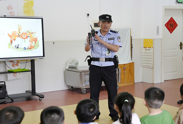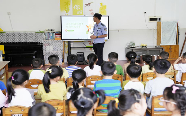 活動中,民警化身為親切的“法治老師”。他們通過講述真實發(fā)生的案例,為孩子們普及學(xué)前教育法。同時詳細介紹騙子的常用拐騙手段,并傳授使用防拐騙方法,還普及了交通安全知識。民警借助生動的動畫短片和趣味問答引導(dǎo)幼兒理解“遵守規(guī)則”“保護自己”的重要性。在防拐演練環(huán)節(jié),民警播放動畫片《不跟陌生人走》,并教孩子們傳唱朗朗上口的防拐兒歌,幫助孩子們識別騙術(shù),牢記求助方法。