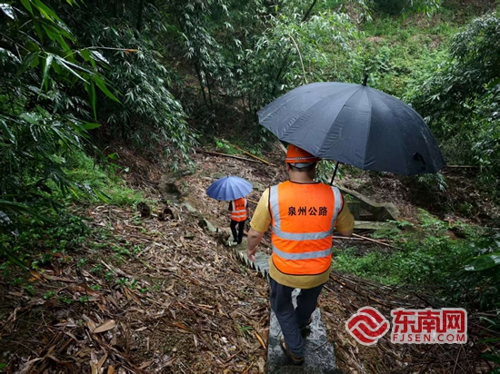 圖為安溪分中心工作人員在易溜方路段巡查。泉州市公路中心 供圖