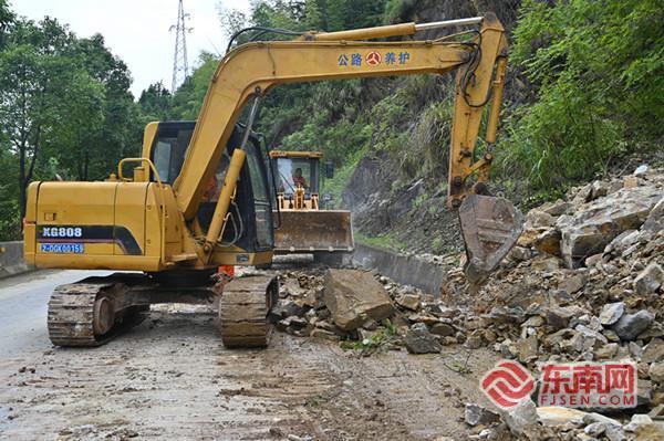 7月21日晚,省道308線沙縣區(qū)長紅村路段發(fā)生山體崩塌,石塊影響道路安全通行。 東南網7月23日訊(通訊員 徐紫瑩)近日,短時強降雨突襲沙縣區(qū),落石、倒伏樹木占據多處路面,影響通行安全。三明市公路事業(yè)發(fā)展中心沙縣分中心全體職工晝夜不息,在暴雨與險情中展開與時間的競速賽。 7月21日傍晚,一陣強降雨剛剛過去,高砂公路站職工在國道205線龍江村路段發(fā)現(xiàn)倒伏樹木,占據半幅路面。他們披上雨衣、提起油鋸便沖入雨中,不顧大風掀起的雨衣和沾滿鋸末的臉頰。經過半小時疾速清理,他們將道路安全隱患清除。 當晚9時許,在省道308線長紅村路段,隨著一聲巨響——約300m3土石轟然傾瀉,石塊攔住了過往群眾的通行道路,現(xiàn)場車隊排起長龍。大洛公路站站長林新清到達現(xiàn)場后,安排專人觀察邊坡穩(wěn)定情況,并組織人員對現(xiàn)場進行安全布控。鏟車就位后立即開展清理落石工作,在各方配合下,近兩小時緊張作業(yè)后,該路段恢復通行狀態(tài)。