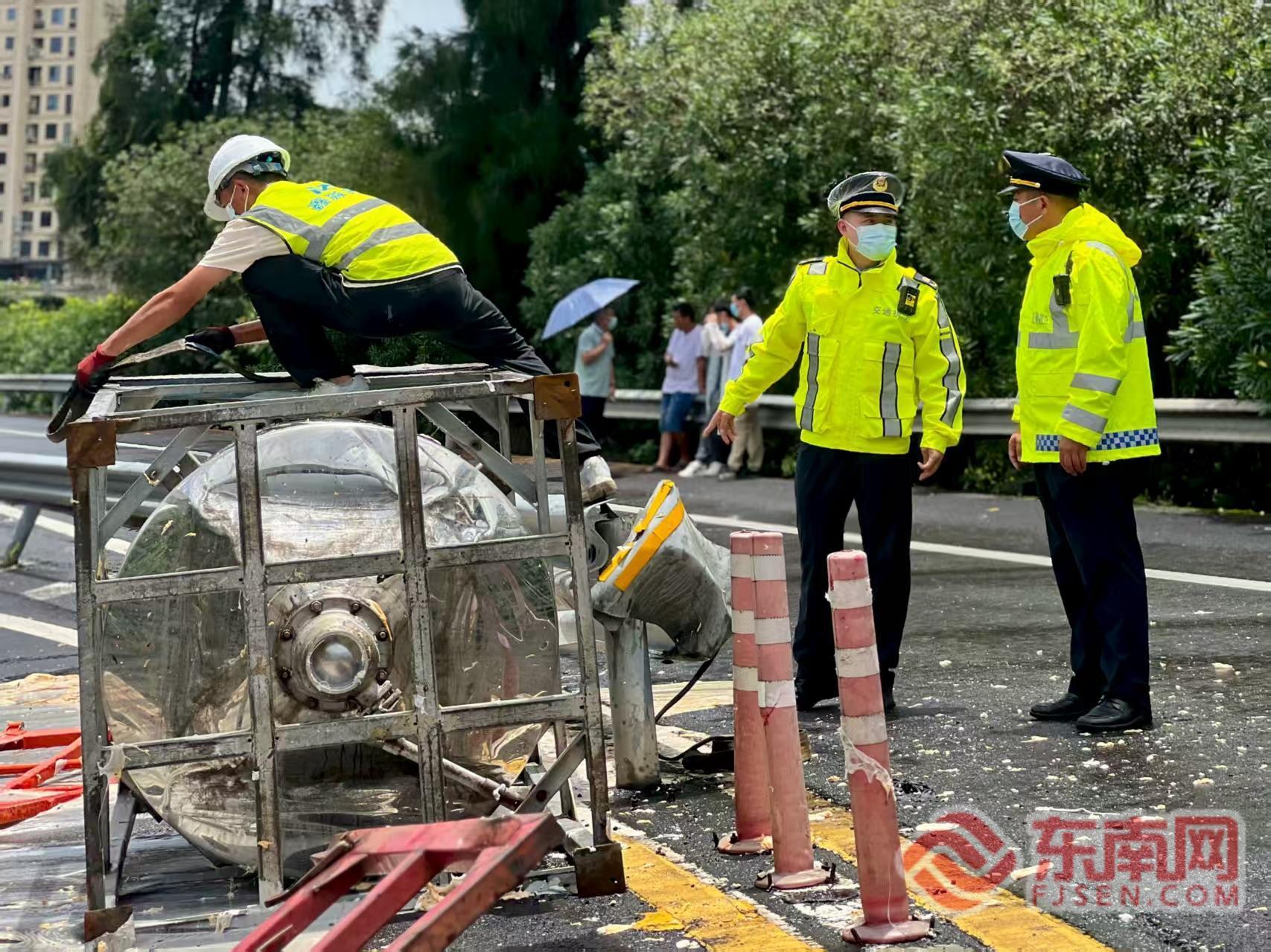 東南網(wǎng)7月24日訊(通訊員 黃婕琳 陳宗)7月23日10時許,G15沈海高速福鼎段A道27K+900m處太姥山站出口匝道突發(fā)險情。寧德高速執(zhí)法支隊(duì)接警中心接到緊急報警:一輛運(yùn)輸?;返闹匦桶霋鞝恳囋谠训拦諒澨幇l(fā)生貨物掉落,情況危急!