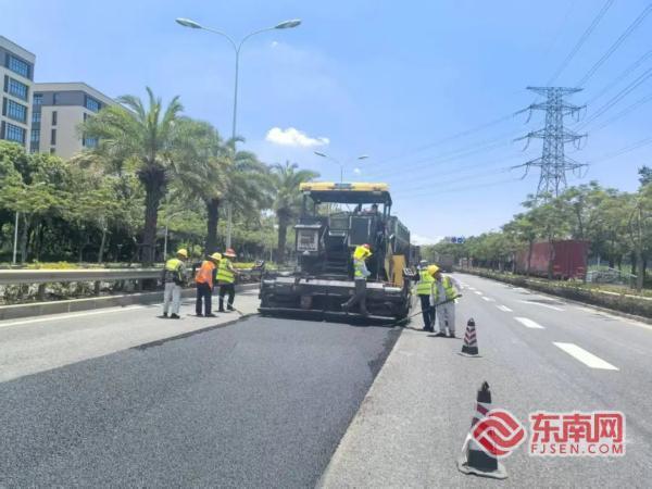 公路部門(mén)對(duì)海翔大道部分路段進(jìn)行修復(fù)(廈門(mén)公路中心供圖) 東南網(wǎng)8月13日訊(記者 劉瑋 通訊員 柯麗清)近日,廈門(mén)市交通局公路中心海滄公路部門(mén)組織對(duì)海翔大道部分路段進(jìn)行集中修復(fù),通過(guò)規(guī)范化施工完成瀝青路面修復(fù),進(jìn)一步提升道路通行品質(zhì),為市民營(yíng)造更加平穩(wěn)、安全、舒適的出行環(huán)境。 隨著使用年限增長(zhǎng),海翔大道交通繁忙路段在車(chē)輛荷載和自然因素共同作用下,路面出現(xiàn)了裂縫、下沉等問(wèn)題。為保障道路安全,海滄公路部門(mén)迅速組織修復(fù),提前制定施工方案并嚴(yán)格落實(shí)安全生產(chǎn)要求。 施工現(xiàn)場(chǎng),銑刨機(jī)、攤鋪機(jī)、壓路機(jī)等大型機(jī)械設(shè)備有序作業(yè),施工人員分工協(xié)作,形成高效聯(lián)動(dòng)。為減少對(duì)交通的影響,作業(yè)人員圍擋封閉作業(yè)區(qū)域,并設(shè)置車(chē)輛引導(dǎo)牌、安全警示錐等設(shè)施,引導(dǎo)車(chē)輛有序通行,既保障了施工安全,又最大限度降低了道路施工對(duì)市民出行的影響。
