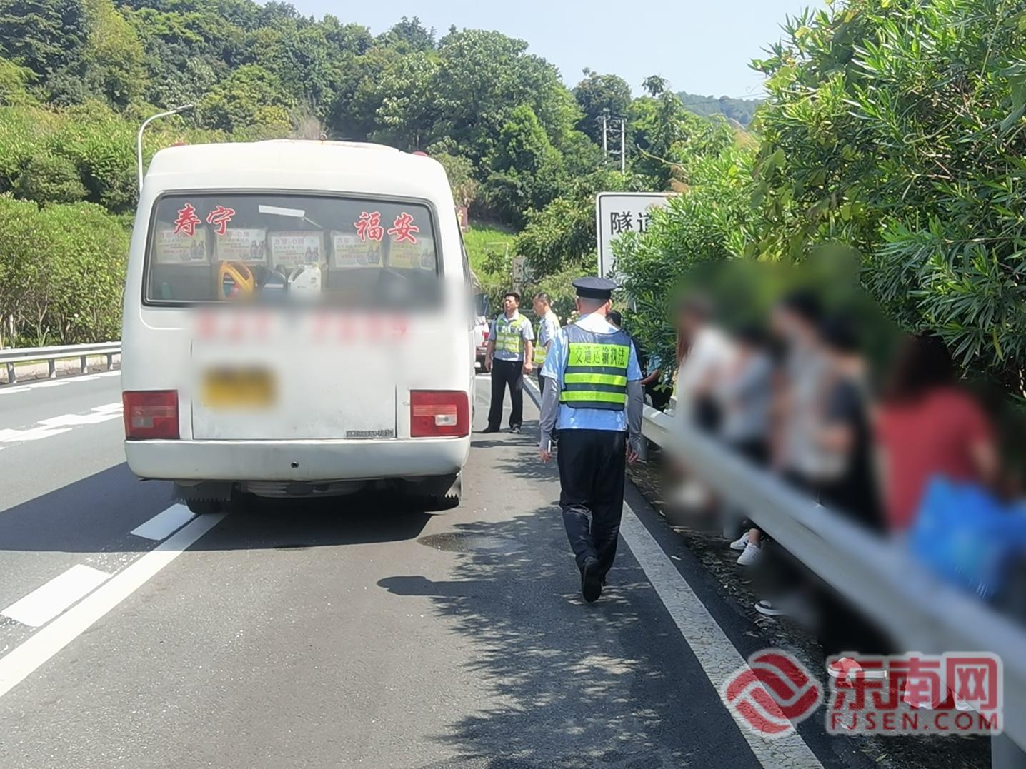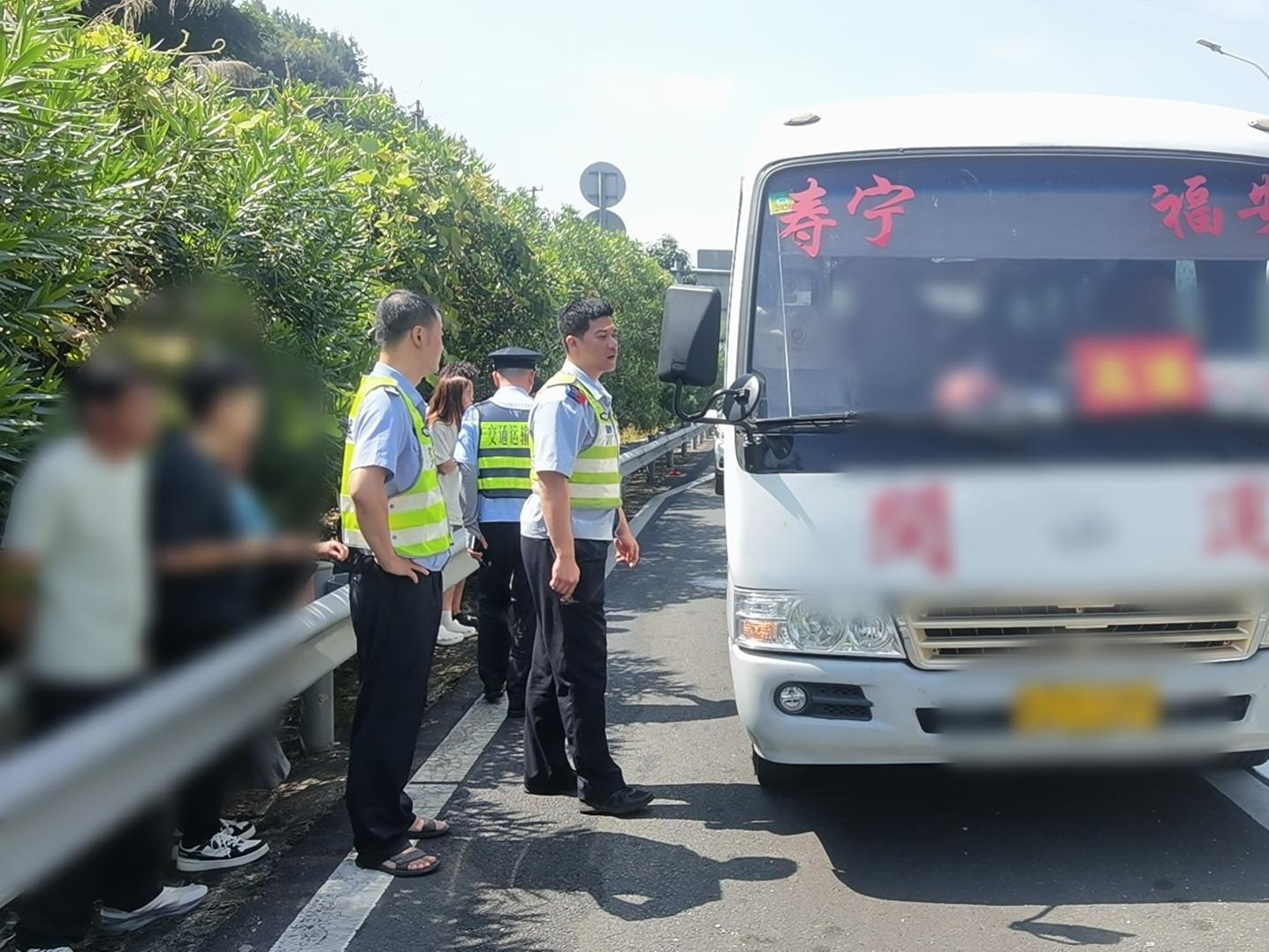 東南網(wǎng)8月12日訊(通訊員 李思澄 李國(guó))8月11日上午9時(shí)許,寧德高速公路行政執(zhí)法支隊(duì)壽寧中隊(duì)在例行安全巡查時(shí),發(fā)現(xiàn)半嶺隧道入口前方應(yīng)急車道內(nèi)停靠著一輛中巴客車,多名乘客正在下車。情況緊急,執(zhí)法人員立即將執(zhí)法車輛停于故障車后方,迅速完成安全警示布控。