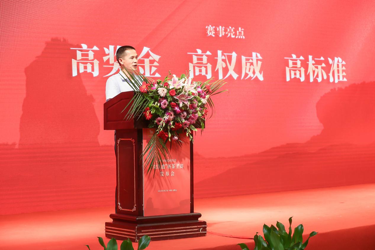 八馬茶業(yè)股份有限公司總經(jīng)理吳清標現(xiàn)場致辭 吳清標:通過高標準茶王賽,為武夷巖茶打造高層次、規(guī)范化競技平臺 八馬茶業(yè)股份有限公司總經(jīng)理吳清標在致辭中表示,秉承著矢志不移為消費者甄選好茶的初心,八馬茶業(yè)去年在武夷山投資興業(yè),武夷巖茶“雙世遺”杯茶王賽取得了相當成功,也是在2020年,八馬茶業(yè)榮獲武夷巖茶原產(chǎn)地茶企納稅冠軍。 八馬茶業(yè)有責任助力武夷巖茶發(fā)展,通過舉辦茶王賽,重金激勵制茶高手做好茶,形成做好茶氛圍,為武夷巖茶打造一個高層次、規(guī)范化的技術(shù)競技與交流平臺。