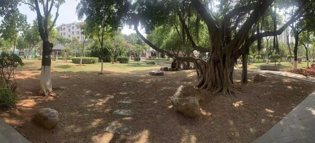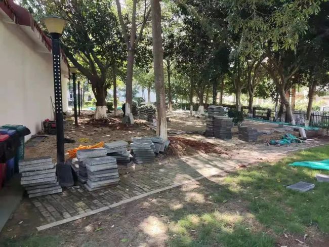 改造后(鋪設(shè)透水磚平臺(tái)并新增原石桌椅) ![]() 改造前