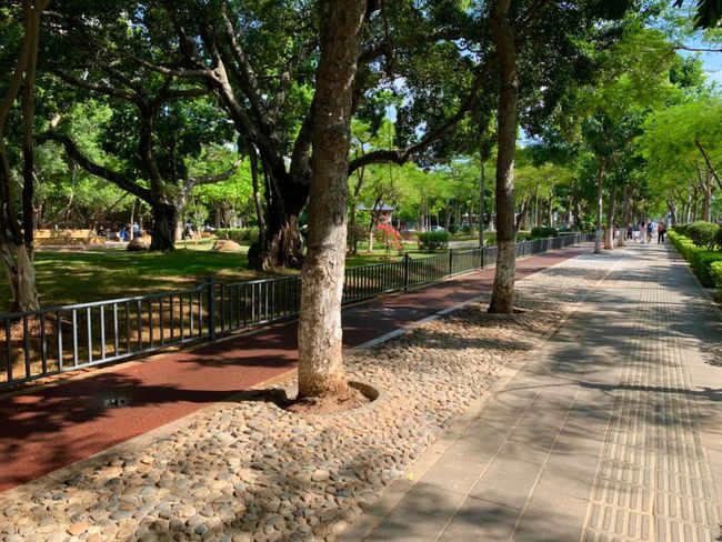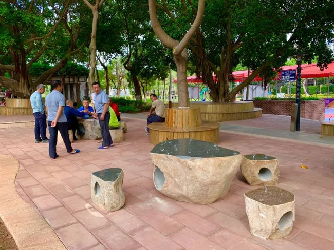 改造后(鋪設(shè)透水磚并加設(shè)原石桌椅) 快約上三五好友逛起來(lái)~ |