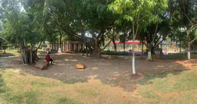 改造后(鋪設透水磚平臺并新增防腐木座椅) ![]() 改造前