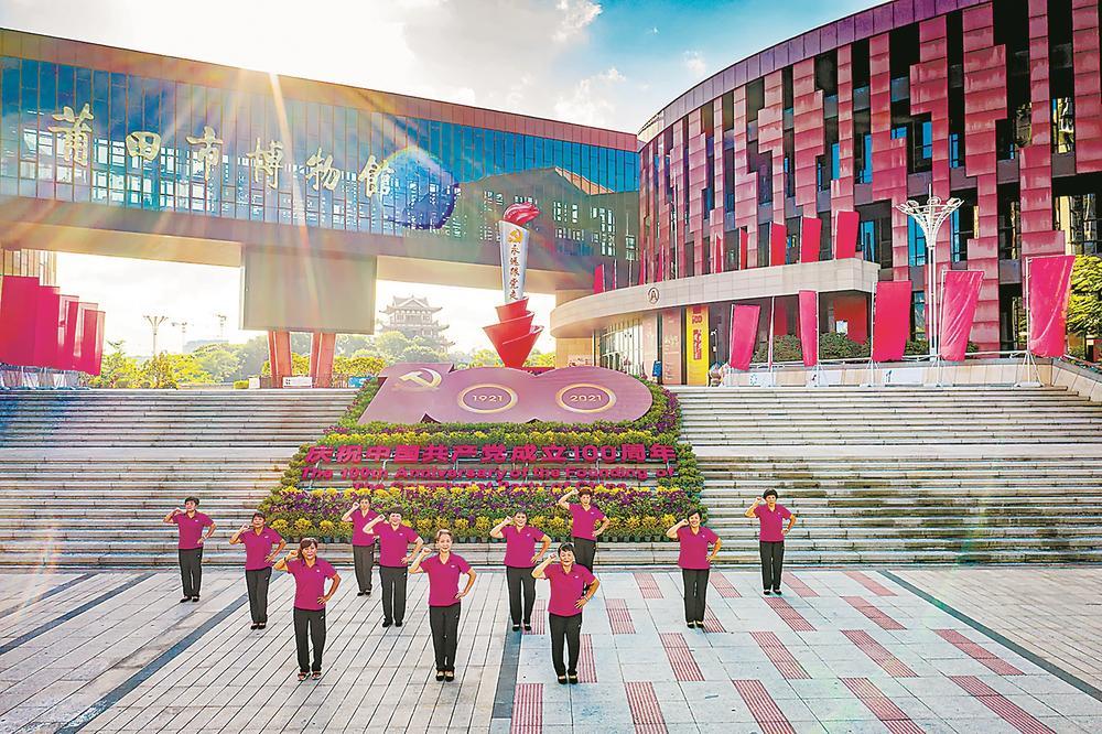 居民在市博物館廣場(chǎng)晨練。林震揚(yáng) 攝