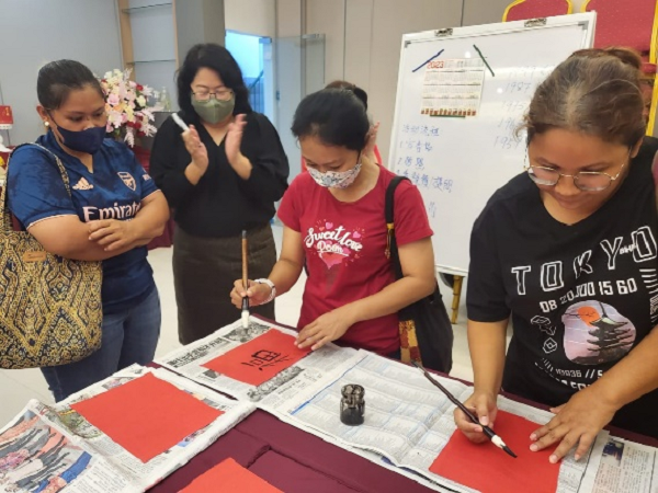 “清新福建下午茶”主視覺畫面 “清新福建下午茶”活動是由福建省文化和旅游廳組織各福建文化海外驛站策劃打造的品牌活動,旨在以茶為媒,讓海外友人親身體驗福建民俗、非遺、文化等獨特的文旅資源,增進海外民眾對福建的了解,共享“各美其美、美人之美、美美與共、天下大同”的中國文化理念。 活動現(xiàn)場,福建文化海外驛站·馬來西亞站邀請嘉賓以毛筆書寫“春”或“?!弊帧.?dāng)?shù)赜讶藢皾h字表現(xiàn)出濃厚的興趣, 現(xiàn)場認真臨摹、書寫,并興致勃勃拿著作品合影留念。