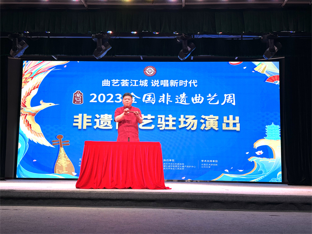 6月9日至15日,由文化和旅游部、湖北省人民政府主辦的“曲藝薈江城 說唱新時(shí)代”2023全國(guó)非遺曲藝周在武漢隆重舉辦。福建省福州評(píng)話、福州伬藝、南平南詞、錦歌、東山歌冊(cè)、答嘴鼓、講古等7個(gè)曲藝類國(guó)家級(jí)非遺代表性項(xiàng)目精彩亮相,為江城及全國(guó)各地的曲藝同行們獻(xiàn)上一道獨(dú)具特色的曲藝盛宴。省文化和旅游廳二級(jí)巡視員張立峰、非遺處相關(guān)負(fù)責(zé)人參加了開幕式和座談交流會(huì)。 6月12日至15日,王素華,黃春慧兩位國(guó)家級(jí)非遺代表性傳承人領(lǐng)銜的30人福建展演團(tuán)隊(duì)進(jìn)行了11場(chǎng)展演。團(tuán)隊(duì)進(jìn)戲院、進(jìn)校園、進(jìn)社區(qū)、進(jìn)景區(qū)、進(jìn)機(jī)關(guān),與當(dāng)?shù)厝罕娊涣骰?dòng),與全國(guó)同行同臺(tái)展演,展示福建曲藝水平,傳播福建非遺聲音,贏得滿堂喝彩,受到一致好評(píng)。