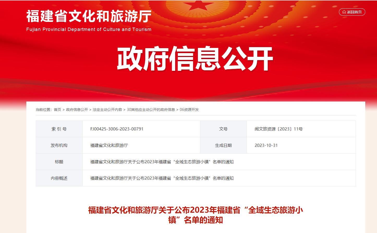 各設(shè)區(qū)市文旅局,平潭綜合實(shí)驗(yàn)區(qū)旅游文體局: 為貫徹落實(shí)全省文旅經(jīng)濟(jì)發(fā)展大會(huì)精神,持續(xù)完善鄉(xiāng)村旅游基礎(chǔ)設(shè)施,規(guī)范經(jīng)營管理,提升服務(wù)品質(zhì),宣傳推廣旅游品牌,形成鄉(xiāng)村旅游目的地,推動(dòng)鄉(xiāng)村文旅經(jīng)濟(jì)發(fā)展,我廳開展了2022年福建省“全域生態(tài)旅游小鎮(zhèn)”遴選培育工作。 在各地遴選推薦的基礎(chǔ)上,經(jīng)專家評(píng)審和公示,現(xiàn)將南靖縣梅林鎮(zhèn)等22個(gè)鄉(xiāng)鎮(zhèn)列入2023年福建省“全域旅游小鎮(zhèn)”名單。 附件:2023年福建省“全域旅游小鎮(zhèn)”名單 福建省文化和旅游廳 2023年10月31日 (此件主動(dòng)公開) 附件 2023年福建省“全域生態(tài)旅游小鎮(zhèn)”名單 1.南靖縣梅林鎮(zhèn) 2.平潭綜合實(shí)驗(yàn)區(qū)金井鎮(zhèn) 3.莆田市荔城區(qū)西天尾鎮(zhèn) 4.廈門市集美區(qū)后溪鎮(zhèn) 5.石獅市永寧鎮(zhèn) 6.周寧縣七步鎮(zhèn) 7.閩清縣東橋鎮(zhèn) 8.龍巖市永定區(qū)城郊鎮(zhèn) 9.南平市建陽區(qū)黃坑鎮(zhèn) 10.泰寧縣新橋鄉(xiāng) 11.云霄縣和平鄉(xiāng) 12.三明市三元區(qū)洋溪鎮(zhèn) 13.邵武市水北鎮(zhèn) 14.連江縣丹陽鎮(zhèn) 15.莆田市秀嶼區(qū)埭頭鎮(zhèn) 16.安溪縣蓬萊鎮(zhèn) 17.福鼎市硤門畬族鄉(xiāng) 18.廈門市翔安區(qū)內(nèi)厝鎮(zhèn) 19.東山縣樟塘鎮(zhèn) 20.連城縣塘前鄉(xiāng) 21.閩侯縣白沙鎮(zhèn) 22.蕉城區(qū)八都鎮(zhèn) |