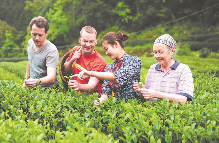 外國友人逛武夷山茶園。劉達(dá)友 攝 |