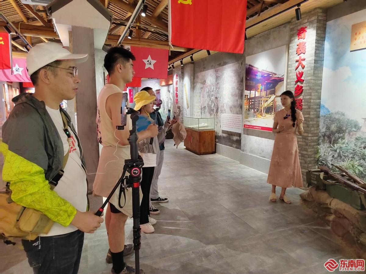 主播團參觀紅軍學(xué)校 “普禮村森林覆蓋率達80%以上,存活眾多國家一級保護瀕危植物,有‘活化石’之稱,2019年就入選了第一批國家森林鄉(xiāng)村名單。 這里還有豐富的紅色文化資源,是20世紀30年代南方三年游擊戰(zhàn)爭時期閩中紅軍游擊隊第1支隊根據(jù)地,也是閩中游擊區(qū)的重要組成部分?!敝v解員向主播團介紹道。 羅漢里紅色文化旅游區(qū)呈帶狀分布,以閩中羅漢里革命根據(jù)地舊址為核心,以紅軍路為軸,分布有雙福寺、紅軍哨所、紅軍亭、紅軍樓、紅軍洞、紅軍廚房、紅角學(xué)校、蝴蝶泉、初心草廬等景點,人文薈萃,風(fēng)景卓絕。如今,這里已成為國家3A級旅游景區(qū),被授予“福州市黨史教育基地”“福州市黨性教育實踐基地”“福州市愛國主義教育基地”等。
