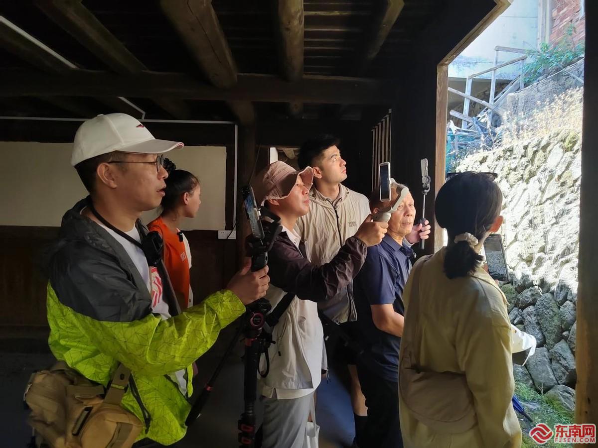 主播團參觀小坪寨 小坪寨擁有眾多永泰莊寨共同的特征,端方莊重,據(jù)陳老先生介紹,它于清朝興建,寨體為全木結(jié)構(gòu),內(nèi)有一口大井,建筑面積4200平方米,寨內(nèi)有三落八扇大厝,共有108間,廂房之外是防匪的寨墻,小坪村陳氏家族代代居住在這里,寨內(nèi)人丁興旺,人才輩出?!肮耪m歷經(jīng)滄桑風(fēng)雨,但經(jīng)過保護性修復(fù)后仍古樸古色,風(fēng)韻猶存?!焙{網(wǎng)主播仇浩為直播間的粉絲們講解道。