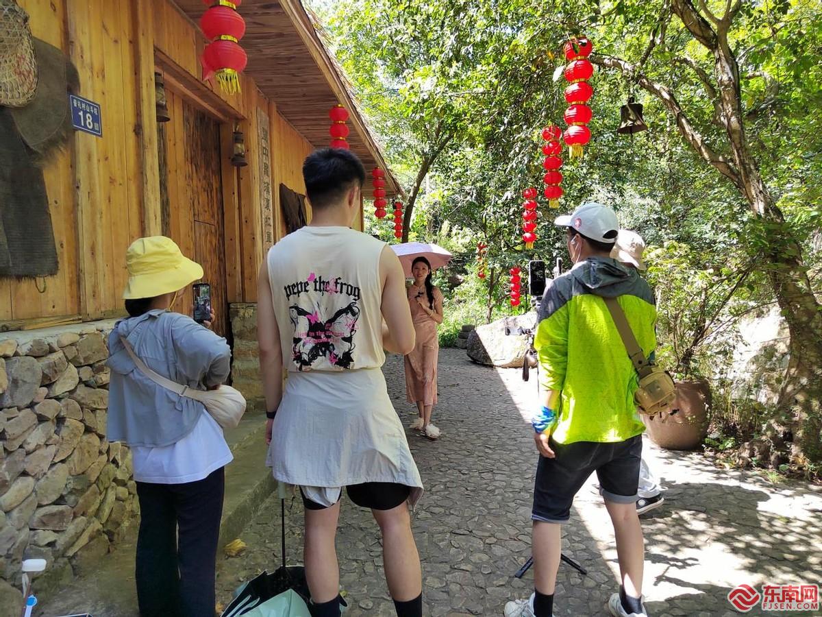 主播團在坵演村合影 普禮村:擦亮紅色底色 激發(fā)振興活力 普禮村地處福清市西北部,是革命基點村,周邊山巒起伏、陡崖奇石眾多,古寺、古厝、古榕、古村落散布其中,形成一條多姿多彩的“十里畫廊”。22日,主播團一行來到普禮村,與羅漢里紅色文化旅游區(qū)講解員陳小麗一起朔溪而上,走紅軍路、游羅漢山。