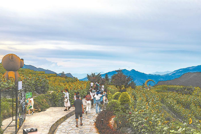 盛夏時(shí)節(jié),政和縣外屯鄉(xiāng)稠嶺村60多畝梯田的向日葵熱情綻放,朵朵花盤迎風(fēng)搖曳。游客徜徉金色葵花海洋,仿若置身油畫夢境。