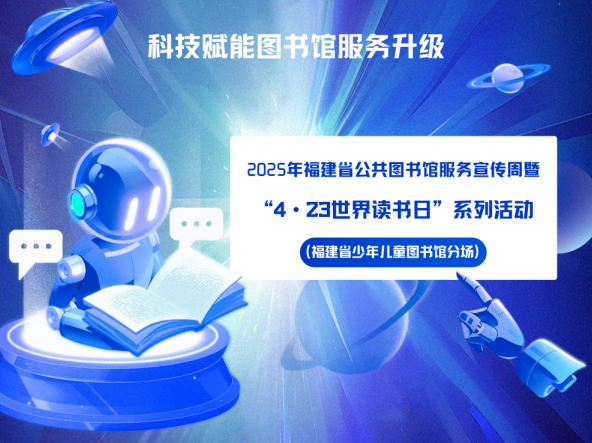 福建省公共圖書(shū)館服務(wù)宣傳周(福建省少年兒童圖書(shū)館分場(chǎng))暨“4·23世界讀書(shū)日”系列活動(dòng) 時(shí)間: 4月20日-29日 地點(diǎn): 福建省少年兒童圖書(shū)館