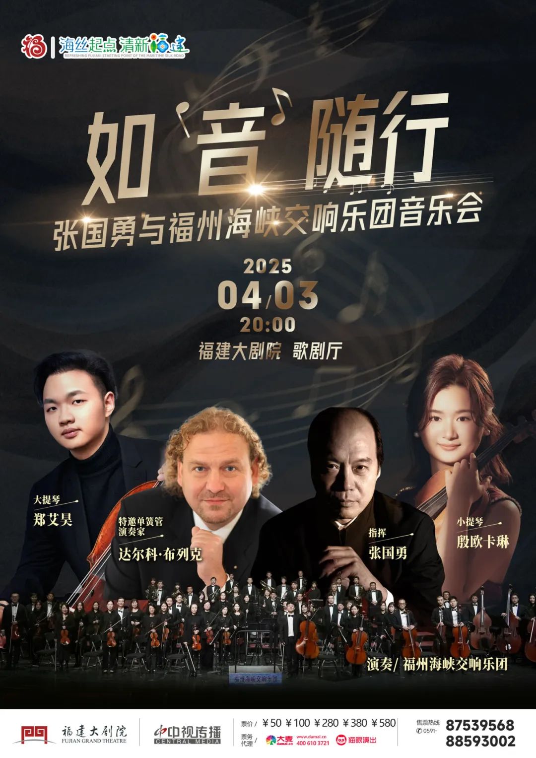 《如“音”隨行——張國(guó)勇與福州海峽交響樂(lè)團(tuán)音樂(lè)會(huì)》 時(shí)間: 4月3日 20:00 地點(diǎn): 福建大劇院歌劇廳 演出單位: 福建省歌舞劇院、福州海峽交響樂(lè)團(tuán)