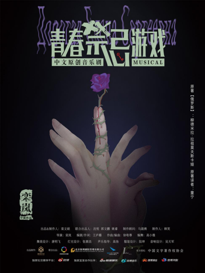 中文原創(chuàng)音樂(lè)劇《青春禁忌游戲》 時(shí)間: 4月10-11日 19:30 地點(diǎn): 福州·海峽文化藝術(shù)中心 歌劇院 票價(jià): 480/280/180/80元 購(gòu)票渠道: “福州海峽文化藝術(shù)中心”微信公眾號(hào)