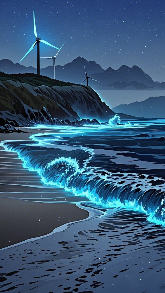 平潭因獨特的水文條件 而頻頻出現(xiàn)藍(lán)眼淚, 尤以長江澳、壇南灣、 東美村等海域為爆發(fā)核心區(qū)。 一般在每年的3-10月, 平潭都會出現(xiàn)“藍(lán)眼淚”, 其中3-6月是高發(fā)期。 它在大海中出現(xiàn)時, 猶如閃爍的繁星落入大海, 營造出一種神秘而又爛漫的氛圍。 如果你是初次追“淚”, 去龍王頭沙灘就很適合。 作為全國最大海濱浴場之一, 這里白天可踏浪嬉水,夜晚可觀賞藍(lán)眼淚。 而在長江澳風(fēng)車田, 風(fēng)車、星空與藍(lán)眼淚交織, 光污染少,畫面純凈浪漫。 建議自駕或租電動車前往, 沿途可拍攝風(fēng)車剪影。 東美村,毗鄰仙人井景區(qū), 漁業(yè)港口與藍(lán)眼淚交相輝映, 因鄉(xiāng)村旅游興起,這里也是熱門打卡地。 壇南灣, 素有“白金海岸”美譽(yù),海域遼闊, 藍(lán)眼淚出現(xiàn)時,浪潮如藍(lán)色火焰, 視覺效果很震撼。 春風(fēng)得意,萬物可期, 人間四月,我在福建等你來~ 文中圖片均由AI輔助生成 |