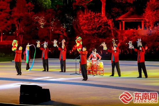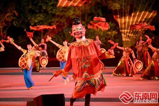 晚會以"綠韻長泰"為序章徐徐展開,通過《狀元?問》情景劇與《綠韻長泰》生態(tài)舞蹈的沉浸式演繹,生動再現(xiàn)千年古邑的人文積淀。在“四季飄香”篇章中,非遺瑰寶煥發(fā)新彩——國家級非遺古儺舞與省級非遺何陽拳、大鼓涼傘同臺輝映,漳州方言說古藝術(shù)攜觀眾穿越歷史長河,郭源源清麗婉轉(zhuǎn)的《遇見》更添詩意。 “繁花似錦”單元創(chuàng)新融合傳統(tǒng)與現(xiàn)代元素,既有鼓樂與提線木偶的跨時空對話,又有童聲合唱《我在這里長大》的溫情述說,搭配時尚說唱《醉美漳州》的律動節(jié)奏,展現(xiàn)傳統(tǒng)與現(xiàn)代的和諧共生。壓軸的“山河共情”篇章高潮迭起,閩臺歌手聯(lián)袂獻唱《聲聲不息》架起情感橋梁,驚險雜技《美味漳州》以肢體語言詮釋美食文化,兩岸藝術(shù)家同臺演繹歌仔戲更彰顯文化同源。