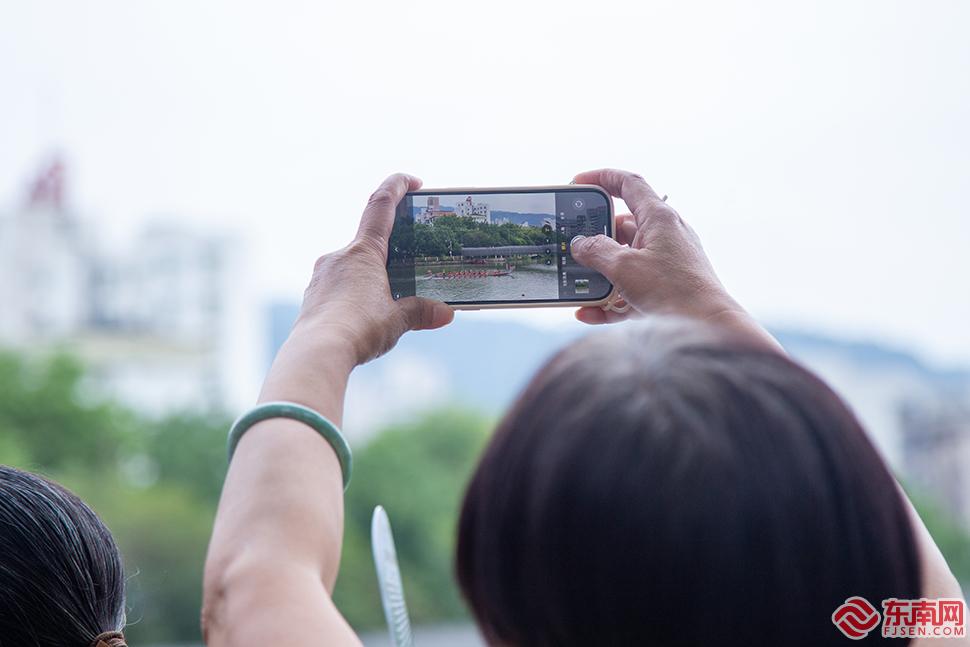 在河道,彩龍競渡熱鬧非凡;在岸邊,不少市民呼朋引伴,扶老攜幼,為選手加油吶喊。來自新羅區(qū)各口辦、20個鎮(zhèn)街,共30支隊伍,700余名選手同場競技,在龍津河上演“速度與激情”大片。 隨著發(fā)令槍一聲清脆鳴響,船只紛紛如離弦的箭一往直前。色彩斑斕的龍舟劈波斬浪,船頭的鼓手一錘一錘地打著節(jié)拍,船員們整齊劃一地揮動船槳,船槳與河面碰撞出激烈的水花,鳴奏出力與美的水上交響。船頭劈開粼粼波光,槳影翻飛間盡顯團隊默契,在翻涌的水花中續(xù)寫“百舸爭流”的奮進篇章。岸邊觀眾熱情高漲,喝彩聲、掌聲此起彼伏,響徹龍津河畔。