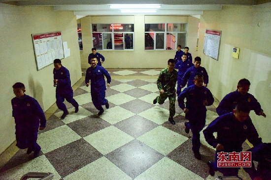 警鈴一響,隊(duì)員們就用最快的速度沖下樓,這是他們最為平常的工作狀態(tài)。即使沒有出警,也要經(jīng)常進(jìn)行演練,時刻保持著戰(zhàn)斗狀態(tài)。東南網(wǎng)記者 林婕攝