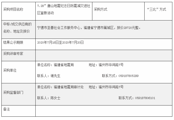 “7.28”唐山地震紀念日防震減災進社區(qū)宣教活動采購結果公告