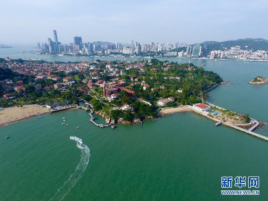 空中俯瞰,鼓浪嶼歷史風(fēng)貌建筑與鷺江海峽對(duì)岸的現(xiàn)代建筑遙相輝映。新華社記者姜克紅攝 2017年7月8日,中國(guó)福建省鼓浪嶼在波蘭克拉科夫舉行的世界遺產(chǎn)大會(huì)上獲準(zhǔn)列入世界文化遺產(chǎn)名錄。鼓浪嶼隸屬?gòu)B門市,是廈門島西南隅一座面積1.8839平方公里的小島。