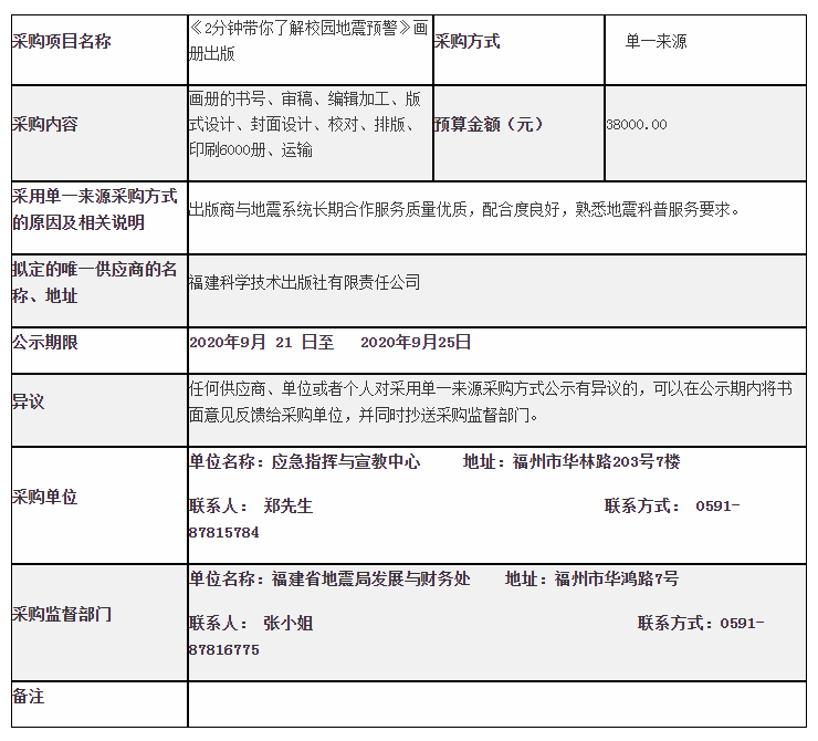 應急指揮與宣教中心《2分鐘帶你了解校園地震預警》畫冊出版單一來源采購公示