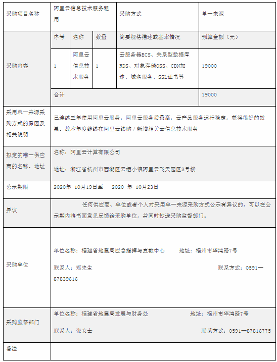應(yīng)急指揮與宣教中心阿里云信息技術(shù)服務(wù)單一來(lái)源采購(gòu)公告