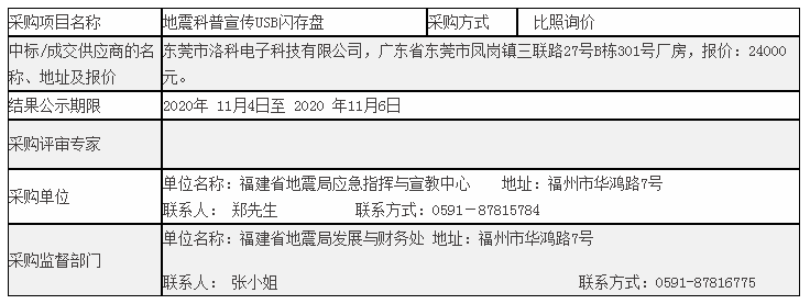 應(yīng)急指揮與宣教中心地震科普宣傳USB閃存盤采購結(jié)果公示