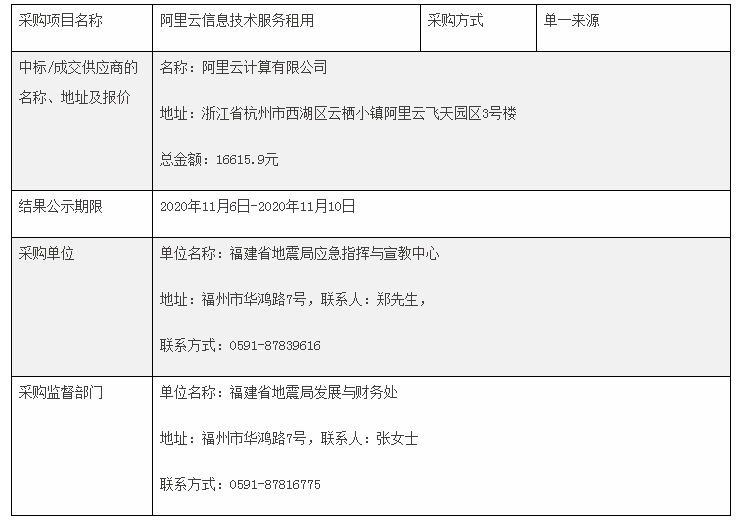 應(yīng)急指揮與宣教中心阿里云信息技術(shù)服務(wù)租用采購結(jié)果公告
