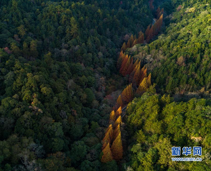 這是11月19日拍攝的福建省三明市將樂縣國(guó)家級(jí)自然保護(hù)區(qū)水杉大道(無人機(jī)照片)。新華社記者 宋為偉 攝