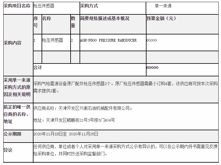 地震災(zāi)害預(yù)防中心槍壓傳感器采用單一來(lái)源采購(gòu)公示