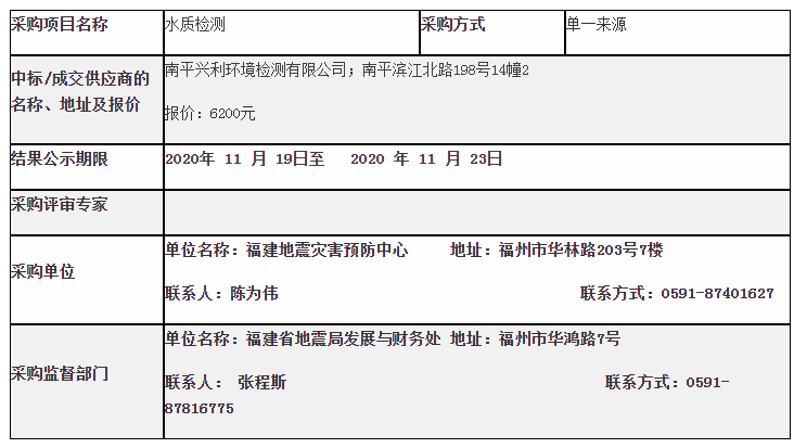 地震災(zāi)害預(yù)防中心水質(zhì)檢測采購結(jié)果公告
