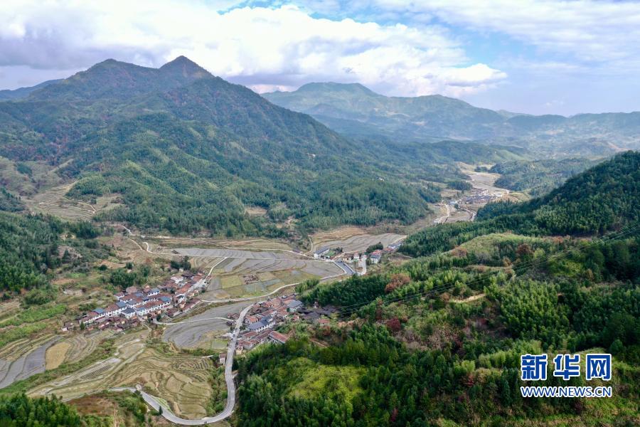 這是11月19日拍攝的大山之中的嶺下村(無人機(jī)照片)。新華社記者姜克紅 攝